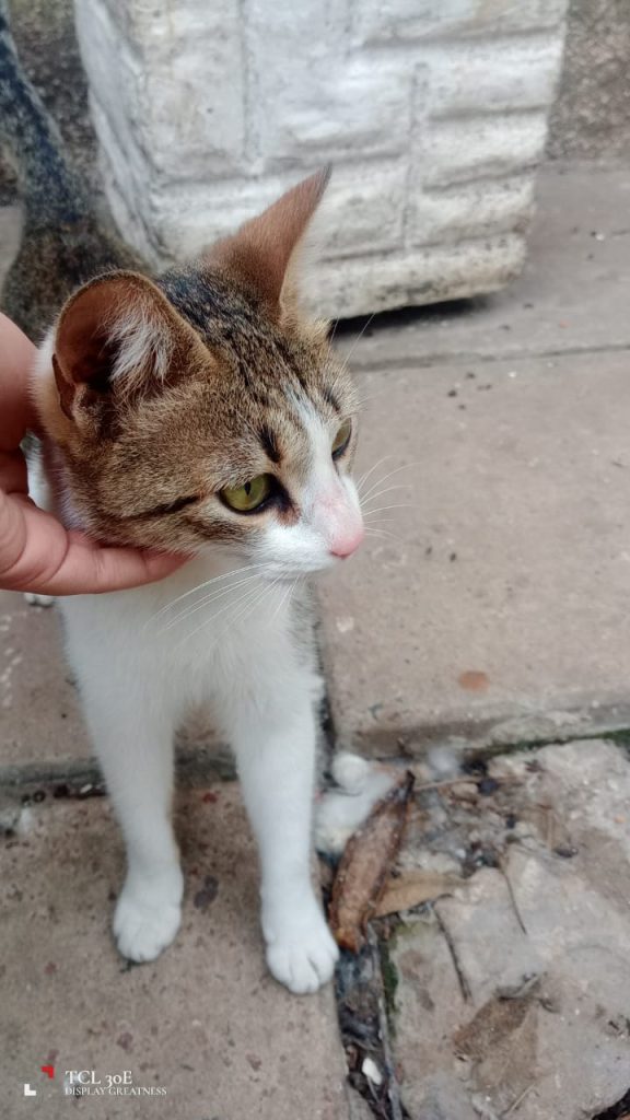 Es una gatita hembra que no llega al año y se encuentra en el barrio Juan El Bueno. Actualmente vive en la calle y la alimentan los vecinos y vecinas, ya que permanece siempre en el mismo lugar. ¡Por eso necesita un techo urgente!