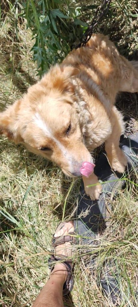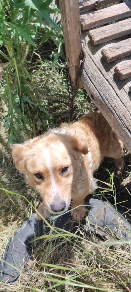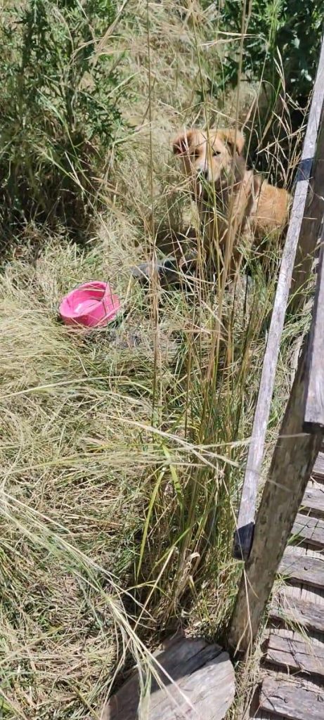 Este machito fue abandonado en el predio de un vecino de El Pato, #Berazategui, después de ser víctima de violencia por parte de un humano. Lo dejaron atado ahí, sin agua ni comida.