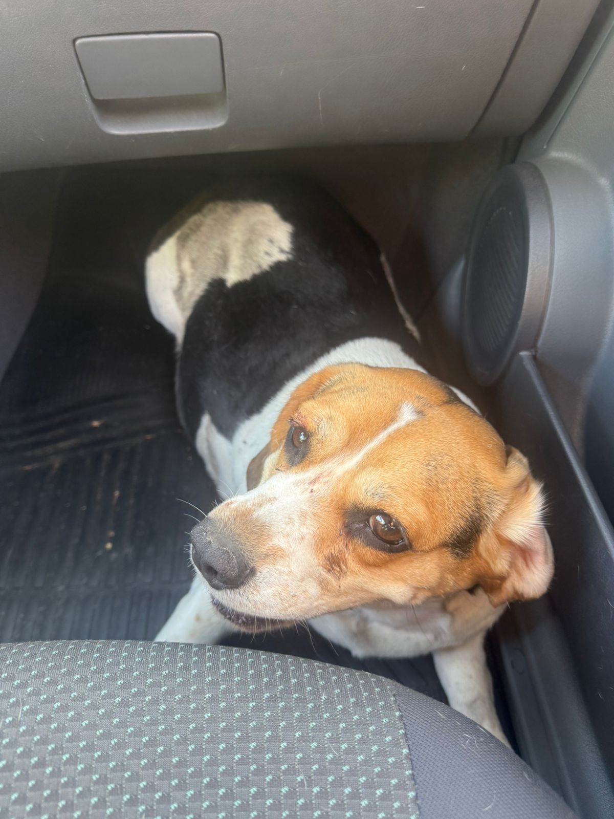 Esta perrita fue atropellada en la esquina de las avenidas Mitre y 14. Creemos que está perdida y queremos ayudarla a regresar con su familia.