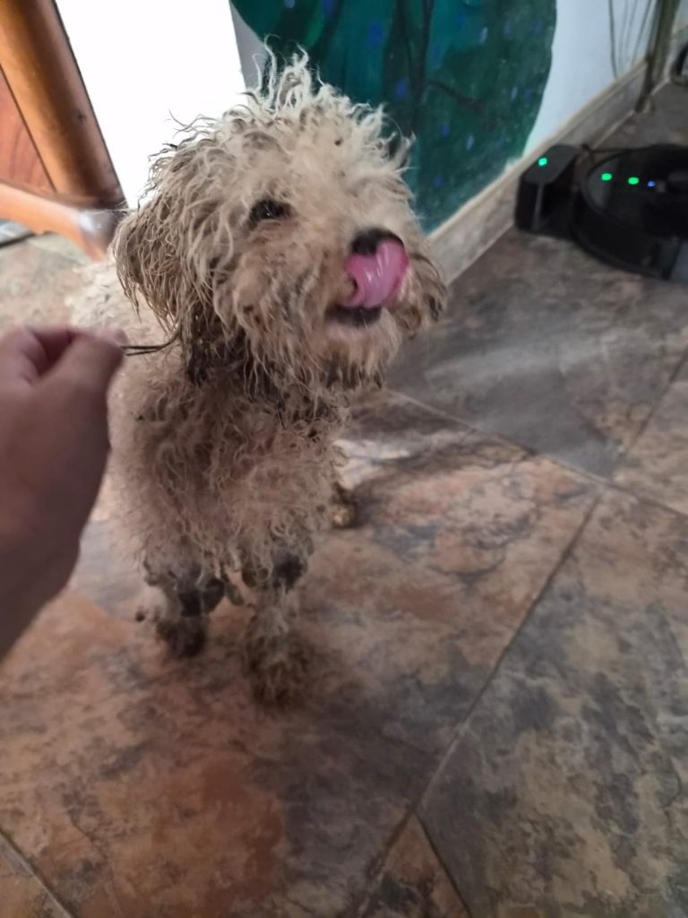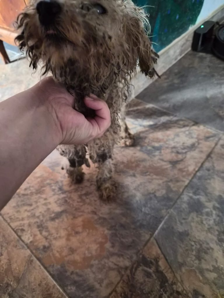 Apareció el lunes (26/01) en la Estación de Hudson (Berazategui). Es un caniche, macho y está ciego de ambos ojos.