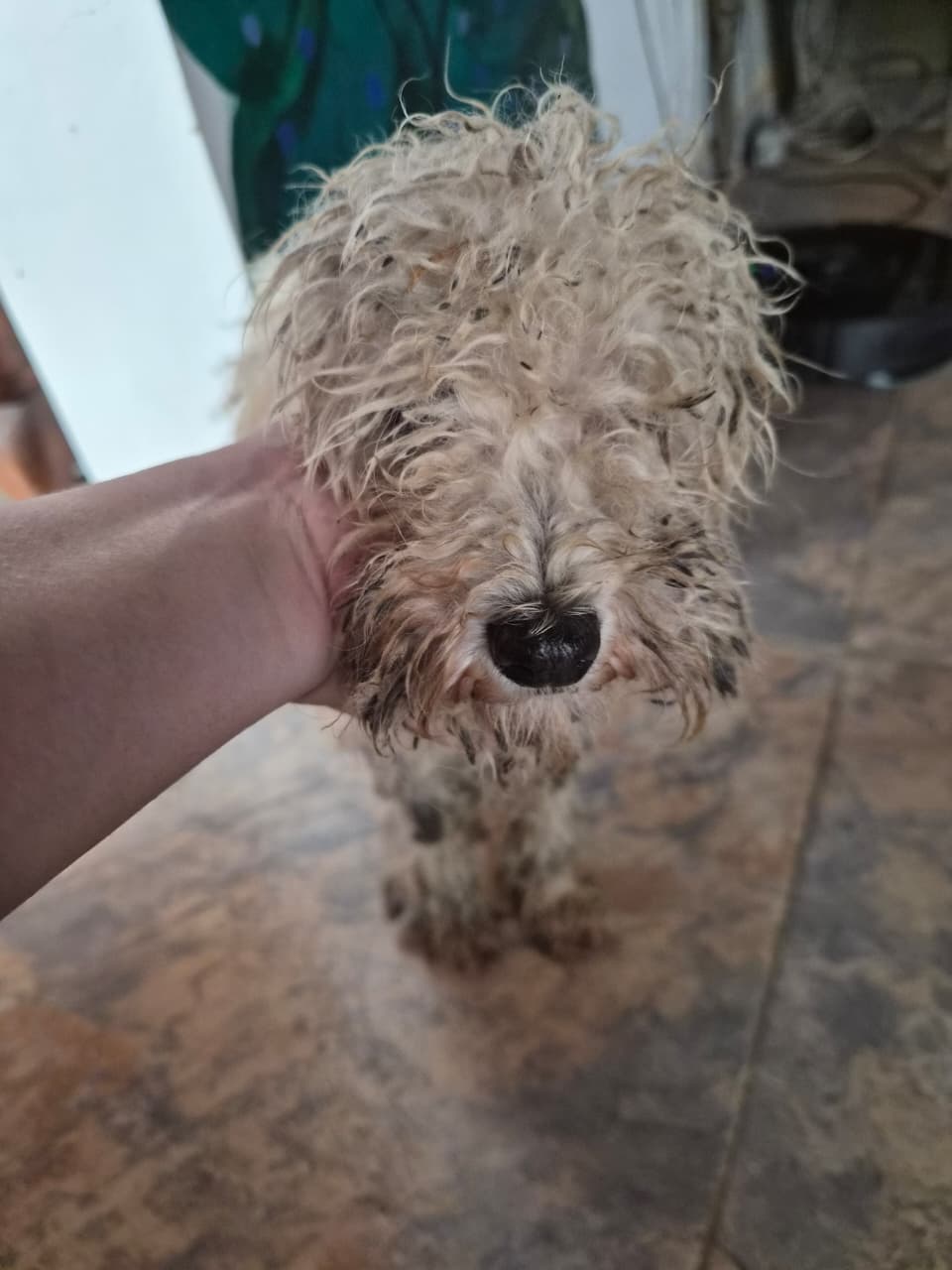 Apareció el lunes (26/01) en la Estación de Hudson (Berazategui). Es un caniche, macho y está ciego de ambos ojos.