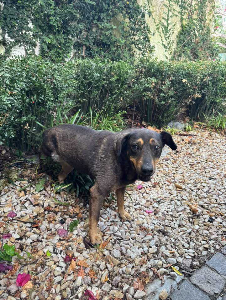 Apareció en la madrugada del 31/12 escondido entre las plantas y asustado por los fuegos artificiales. Es macho, tiene entre 6 y 8 años y una de las patas traseras amputadas ¿Nos ayudás a difundir esta publicación? No lo pueden retener por mucho tiempo.