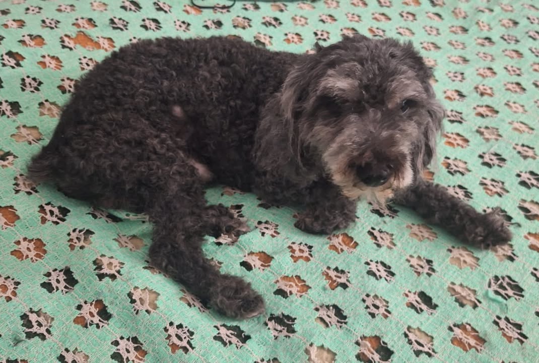 Se perdió ayer (jueves 26/02) en el barrio Jacarandá. Es un caniche negro, viejito, con canas. Necesita medicación y su familia está preocupada por él. ¡Difundamos!